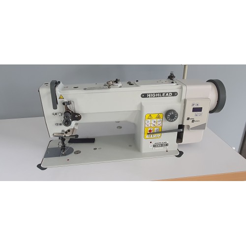 Stebnówka 1-igłowa HIGHLEAD z potrójnym transportem, wyposażona w napęd (DIRECT DRIVE o mocy 750W) napęd umieszczony jest na wałku górnym maszyny). Dzięki temu maszyna ma większa moc rzeczywistą po przez bezpośrednie połączenie bez paska klinowego. Wyposażona została również w oświetlenie LED przestrzeni igłowej wraz z przyciskiem do pozycjonowania igły, duży chwytacz w osi poziomej