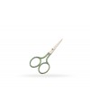 Nożyczki stalowe, niklowane ze zdobionymi uchwytami w zieloną kratę, przeznaczone do wykonywania drobnych prac przy robótkach ręcznych, haftowaniu i tym podobnych.